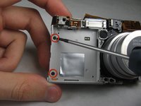 Flip the camera over to the backside and remove screws indicated: