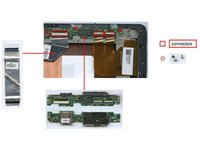 Before removing the battery first seven different adhesives need to be removed that hold down cables.