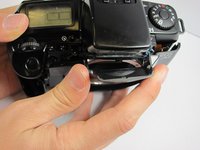 Flip the camera upside down and remove the 5.4mm screw below the lens bezel on the front of the camera.