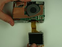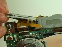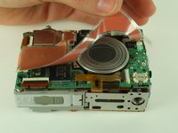 Adhesive tape attaches the flex circuit to the top of the camera. Gently un-stick the flex circuit from the tape, but do not completely remove the flex circuit.