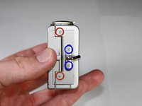 Slide this rubber tab out of the way to reveal the bottom screw.