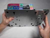From the rear of the PC, push the ports in while lifting the motherboard up and flipping it away from you.
