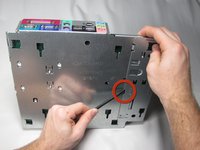 Insert the flat end of a spudger into the slot in the motherboard mounting plate and press the release tab while pushing the extension plate to the right with your thumbs until it comes off..