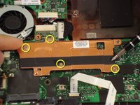 Remove the three screws in the silver tabs at the back of the keyboard. The red circles show where they are located at the back of the base under the screen.