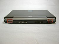 Start by locating the two clips on the bottom of the computer that support the battery.