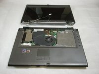 Position hands as shown and hold down the body of the computer. Proceed to lift the display up.