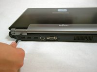 Start by locating the two clips on the bottom of the computer that support the battery.
