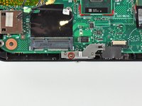 Remove the single 3 mm Phillips screw that secures the USB and power board as well as the DC jack bracket to the lower case.