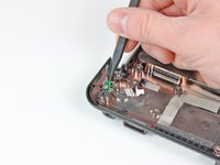 Peel and de-route the SIM card ribbon cable from its channel on top of the underside of the battery compartment.