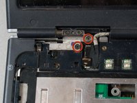 Remove the two screws next to the left hinge of the monitor with a #00 Phillips screwdriver.