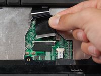 Grasp the tab, gently lift up, and slide the tab to the left to remove the hard drive from the laptop.