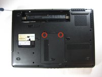 After completing step 4, flip the laptop over again, making sure the battery side is up. Remove the two screws securing the RAM shield to the lower case.