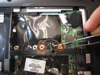 Remove the two(2) 3.7 mm Phillips screws securing the wireless card to the motherboard.