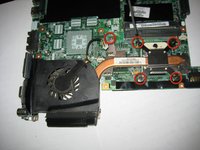 To remove the heat sink,remove the marked screws and remove the fan's power cable. Clean the CPU/heat sink and add new thermal paste.