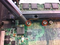 Remove the two 3.8 mm Phillips screws securing the right edge of the expansion port board to the motherboard.