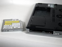 Unscrew the two 3mm Philips screws from the optical drive bay.