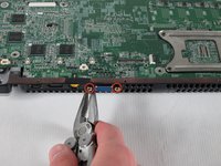 Remove the audio cable - the one with the yellow covering located at the bottom-right corner of the motherboard - by pulling the yellow covering towards you.