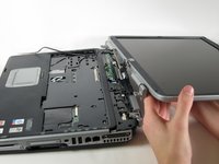 Unscrew the two 8mm Philips screws that attach the hinge to the laptop's display.