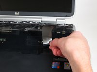 Pull on the black tab with the HP service sticker to unplug the display from the motherboard.