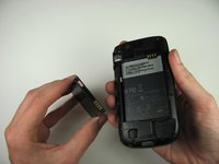 Turn the phone over and remove the battery by using your thumb to push forward on the battery and then lift it.