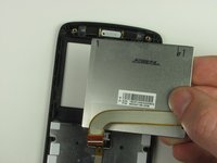 Split apart the motherboard and front panel. Remove the other yellow piece of tape off of the end of the ribbon cable.