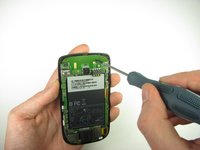 Turn the phone over and remove the battery by using your thumb to push forward on the battery and then lift it.
