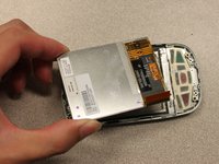 Unscrew the two 3mm phillips #0 screws from the top of the device that secure the rigid flex board to the screen panel.