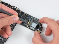 Use the tip of a spudger to carefully pry the antenna connector up off the AirPort/Bluetooth board.