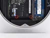 Remove the two 11.3 mm T6 Torx screws securing the fan to the logic board near the antenna plate.