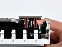 Carefully insert a putty knife into the crevice in between the top cover and bottom housing. Start on the left side first. Push the blade down until you meet firm resistance (roughly 3/8 of an inch).