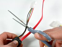 Cut the white Molex connectors off both cables. The excess cable has to fit inside the Mini, so just leave 3-4" on each cable.