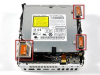 Remove the two silver Phillips screws holding the SuperDrive to the internal frame.