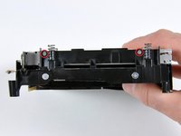 Rotate the internal frame 180 degrees and remove two more silver Phillips screws.