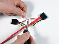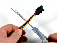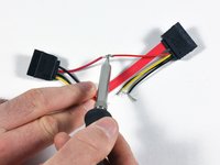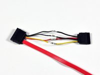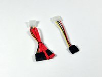 The hard drive has a standard 15 pin SATA power connection, but the logic board has a 6 pin slim SATA power connection. A cable to connect them doesn't exist (yet), so we're going to make one.