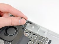 Use the tip of a spudger to pry the microphone off the adhesive securing it to the left side of the upper case.