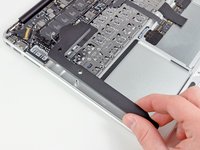Grab the clear plastic pull tab attached to the battery connector and pull it toward the front edge of the Air to disconnect the battery from the logic board.