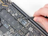 While carefully lifting the keyboard ribbon cable with one hand, use the tip of a spudger or your fingernail to flip up the retaining flap on the keyboard ribbon cable ZIF socket.