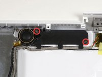 If you didn't remove the ground loop screw in step 20 above, remove it now. It's a 7 mm (may be 4.2 mm in Santa Rosa/Penryn models) Phillips screw securing the ground loop in the right speaker cable and microphone cable to the metal framework.