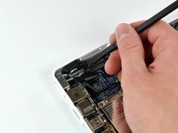 Use a spudger to carefully disconnect the microphone cable from the logic board. You'll want to work from side to side, and slowly wiggle the connector out of its socket.