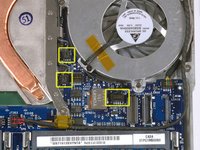 Disconnect the two newly-revealed temperature sensor connectors and the fan connector from the logic board. These connectors move up, not towards the rear of the case, and can be lifted with gentle pressure from under the cable.