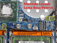 On Santa Rosa/Penryn models, the heat sink has a slightly different bolt pattern. See second picture.