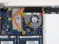 Lift the logic board up from the right side, and slide it up and out of the computer. Be careful that the right speaker, MagSafe board, and battery connector don't catch on the lower case.