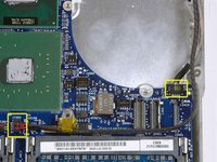Disconnect the three antenna cables from the Airport card. There may be a square foam piece over the logic board connector.