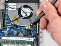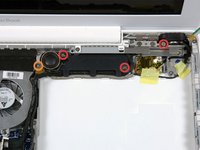 Peel up the foil tape between the fan and the optical drive. Lift the foil tape from the fan side, leaving it attached to the optical drive.