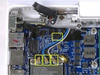 Disconnect the three antenna cables from the Airport card, and the black inverter cable from the logic board.