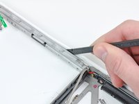 Gently pry the optical drive bezel away from the adhesive securing it to the lower case enough to lift the mounting ear near the hard drive connector above the metal framework.