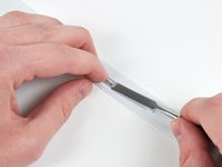 Using a spudger, gently pry up the white plastic slot and slide the metal c-channel to the right and away from the display.