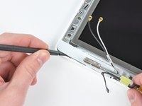 Disconnect the two antenna cables from the Airport card, and the black inverter cable from the logic board. (Pull vertically on all three.)