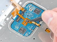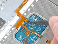 Gently peel up the section of the upper case cable stuck to the keyboard ribbon cable, being careful not to disturb the keyboard ribbon cable in the process.