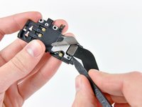 Use the tip of a spudger to pry the antenna connector closest to the logic board up from its socket on the AirPort/Bluetooth board.
